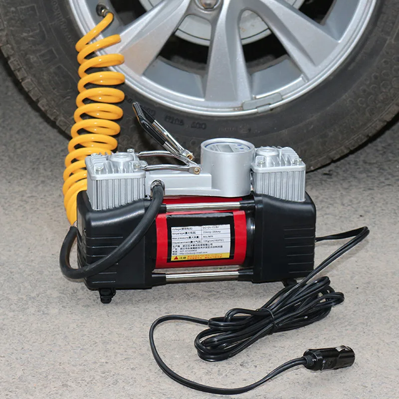 Все автомобильные компрессоры устроены практически одинаково: рабочий цилиндр, электромотор и манометр. Особо мощные имеют два рабочих цилиндра. Большинство компрессоров являются поршневыми: давление создается движением поршня. Лучше, если корпус компрессора выполнен из металла — тогда отвод тепла через ребра охлаждения будет осуществляться оптимально.