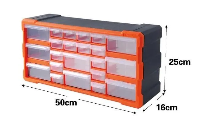 Контейнер небольшой высоты, разделенный отделениями. Варианты выполнения – кейс с ручкой или тумба с выдвижными лотками. Секции небольших размеров предназначены для хранения мелких крепежных деталей и аксессуаров.